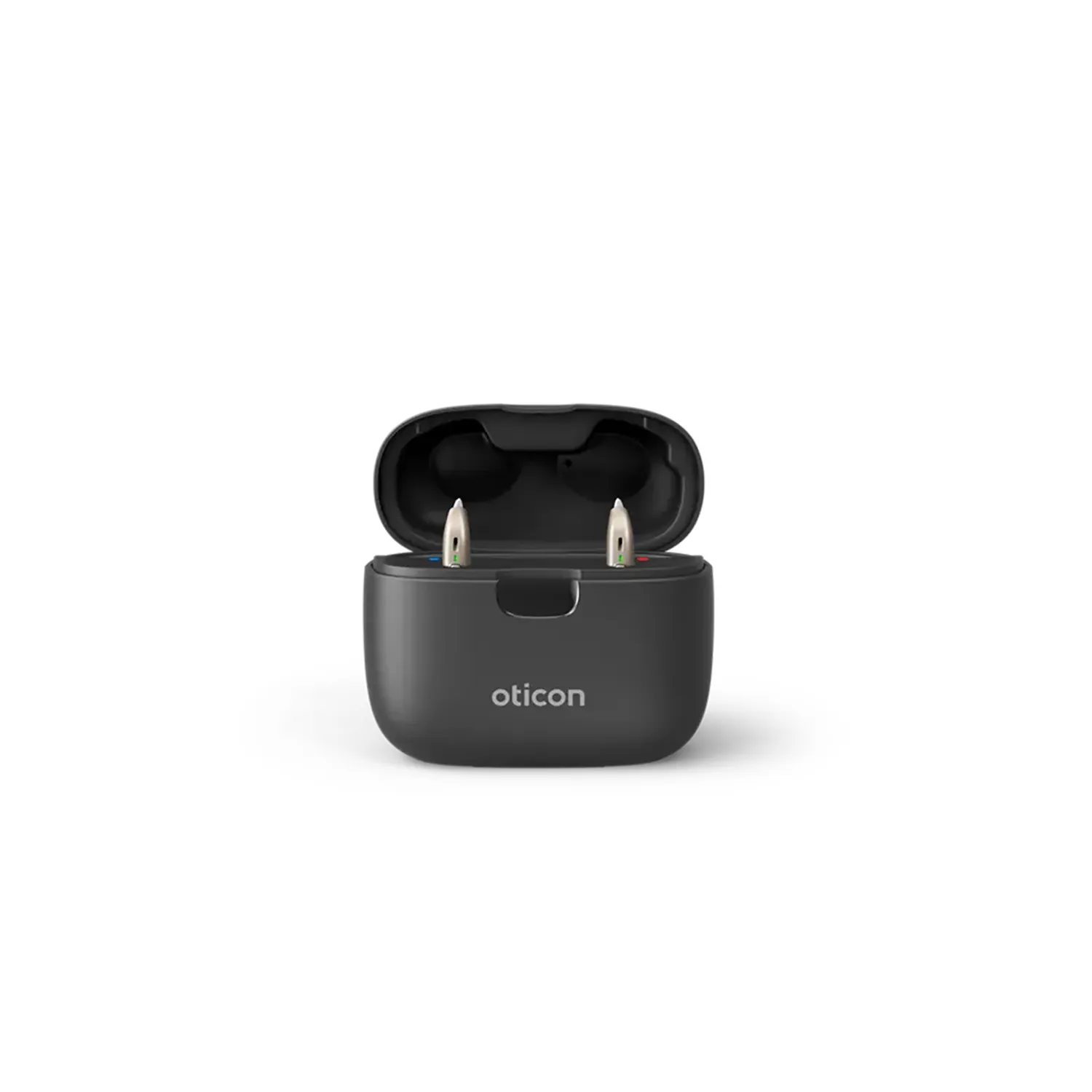 El Oticon SmartCharger es la estación de carga ideal tanto para casa como para llevar. Su diseño compacto y eficiente permite cargar tus audífonos de manera rápida y segura. Simplemente guarda tus audífonos en la caja del cargador, y asegúrate de que siempre tengan energía completa. Además, el banco de energía integrado garantiza que tus audífonos se mantengan cargados incluso cuando estás en movimiento, lo que lo convierte en la opción perfecta para quienes necesitan un cargador confiable durante el día.