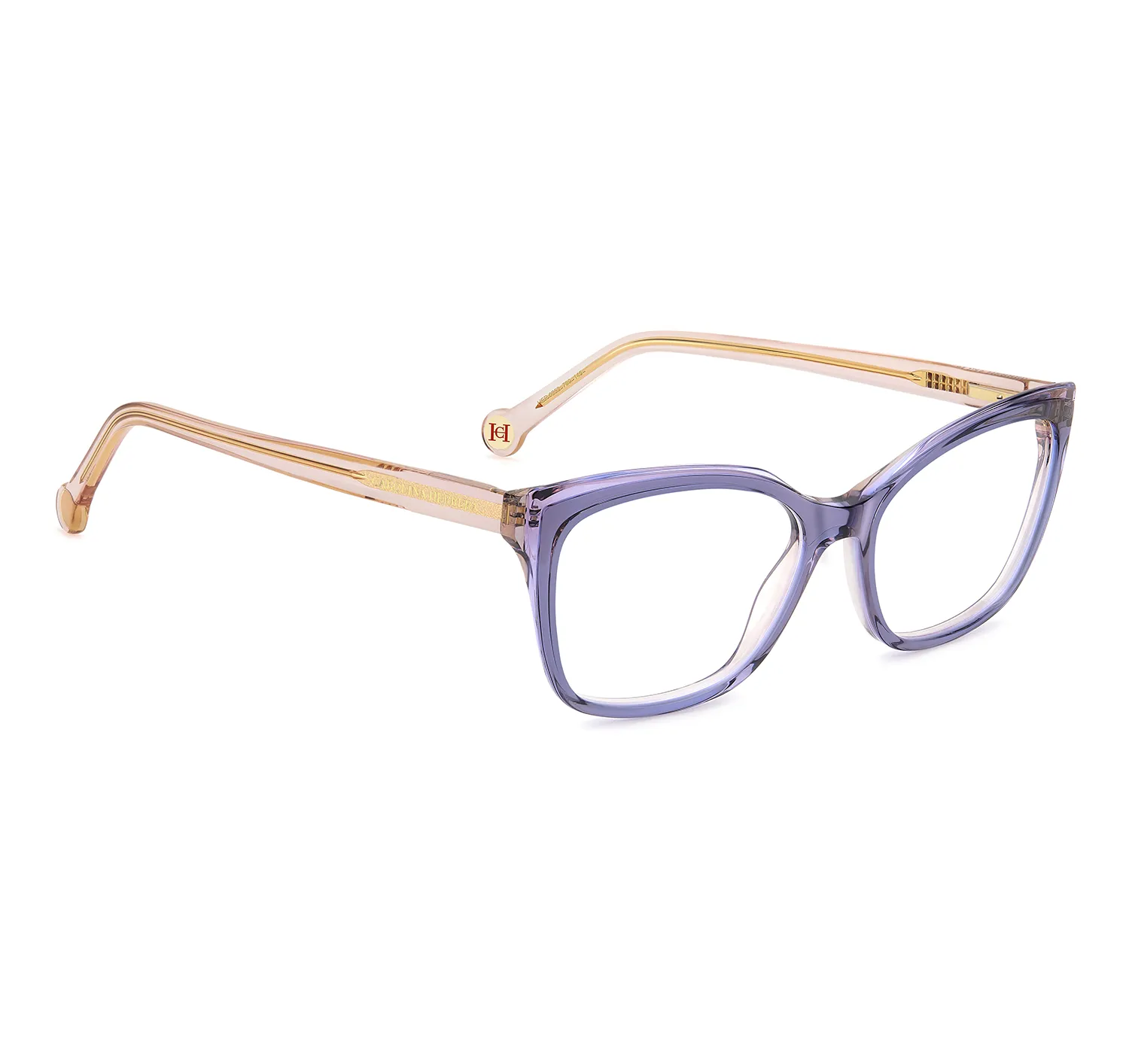 Cada detalle de estas gafas ha sido proyectado para reflejar el lujo característico de Carolina Herrera. Las varillas en un suave tono melocotón traslúcido contrastan armoniosamente con el frontal violeta, incorporando el icónico monograma “CH” en las bisagras y terminales circulares que son sello de la marca. Su construcción robusta pero ligera garantiza una durabilidad excepcional y un ajuste ergonómico, permitiendo que la montura se mantenga cómoda durante todo el día.