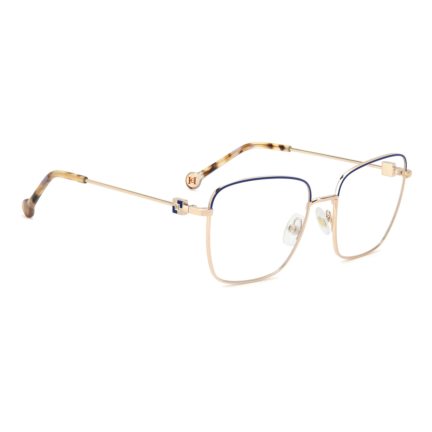 Lo que hace únicas a las HER 0301 KY2 son sus acabados. El detalle del cubo con el logotipo en la varilla y el contraste del esmalte azul sobre el metal dorado elevan esta montura a la categoría de accesorio joya. Es la elección perfecta para quienes aprecian los detalles sutiles que marcan la diferencia en el diseño de lujo.