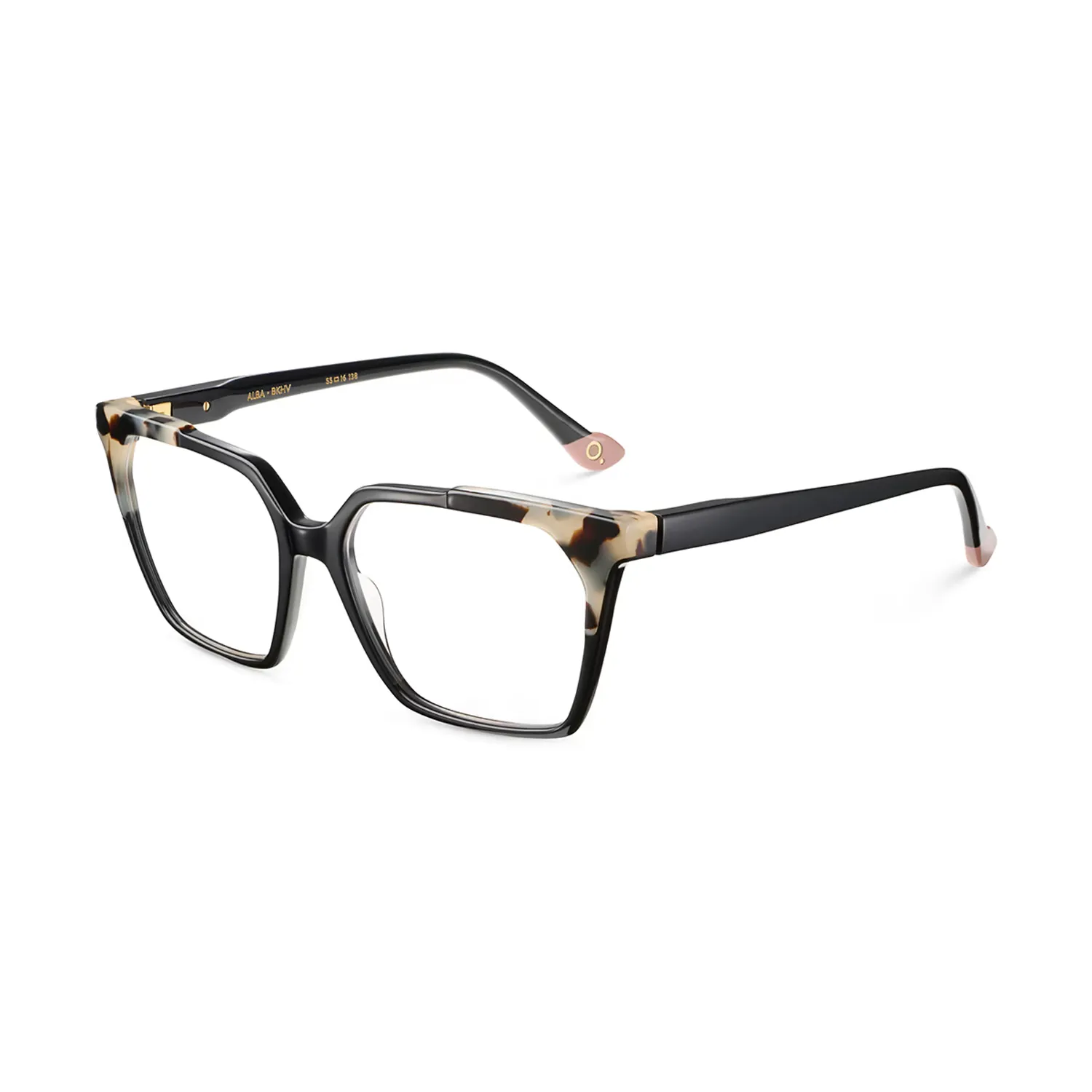 El modelo Alba BKHV de Etnia Barcelona destaca por su silueta cuadrada de grandes dimensiones y ángulos sutilmente marcados. Estas gafas están fabricadas en acetato natural de alta calidad, combinando un frontal en color negro sólido con detalles en patrón Havana claro en los talones y terminales. Además, su diseño equilibra una estética minimalista con toques de textura orgánica que aportan distinción al rostro. Por eso, son la elección ideal para quienes buscan una montura con mucha presencia y un estilo atemporal.