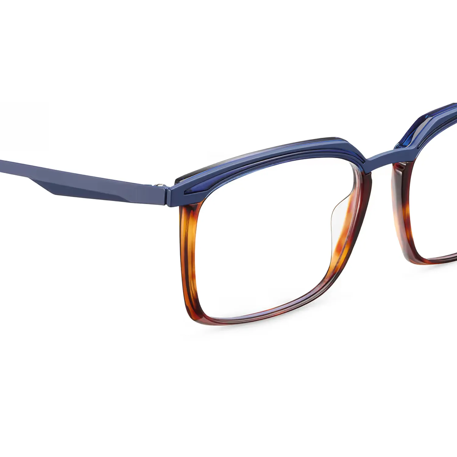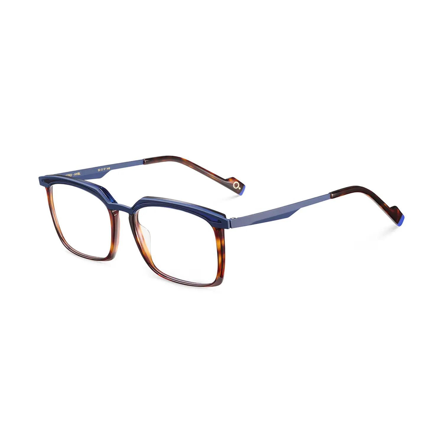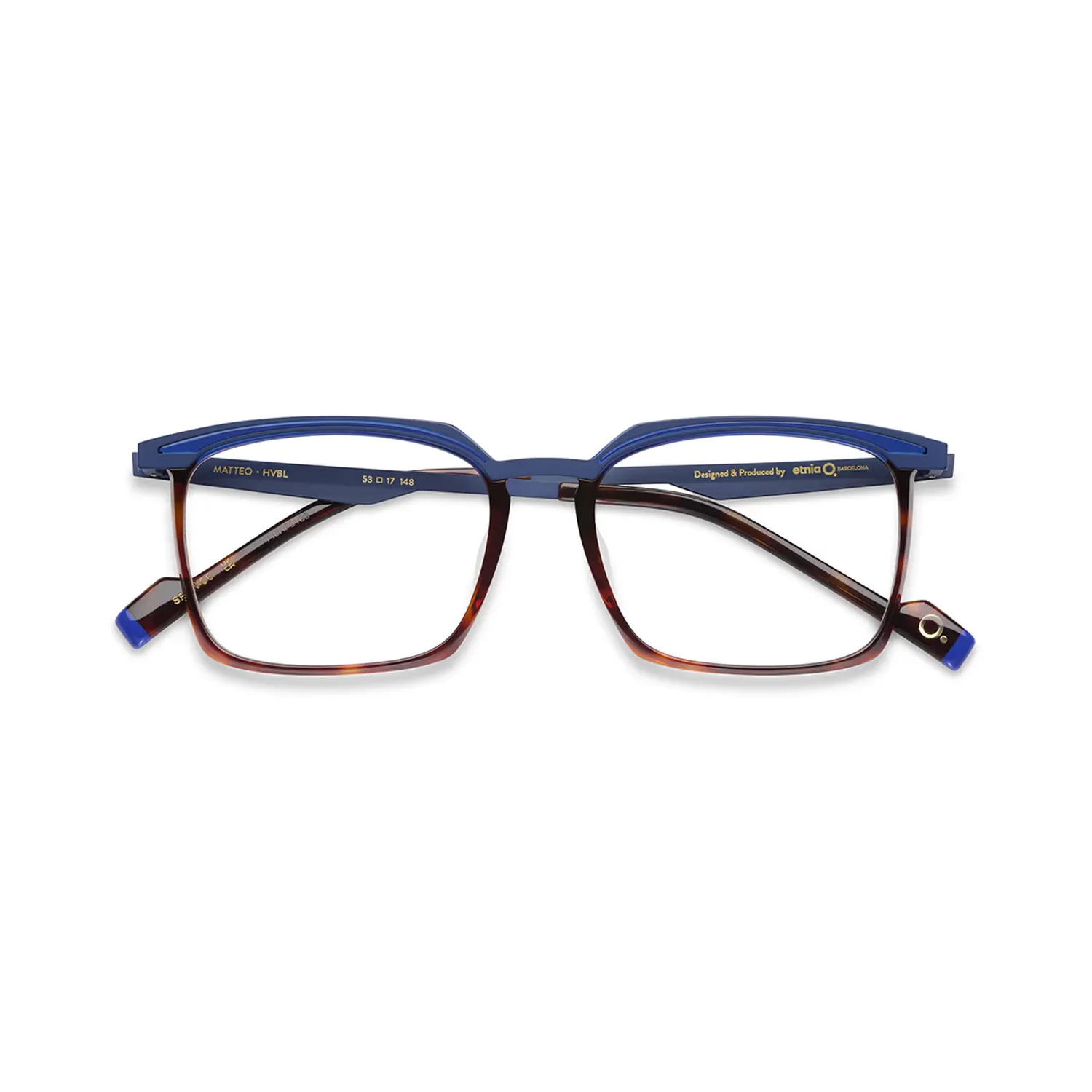 - Matteo HVBL: montura de acetato natural en color Havana con detalles en azul vibrante (Havana / Blue), calibre 53.