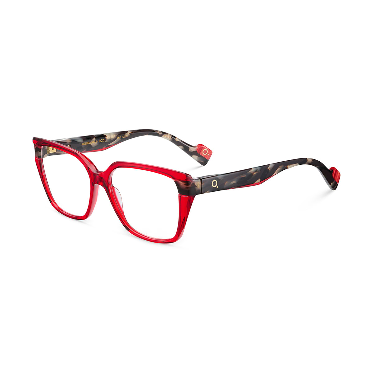 - Mixura No.1 RDZE: montura de acetato natural en color rojo (Red) con varillas estampadas en patrón cebra (Zebra), calibre 54.