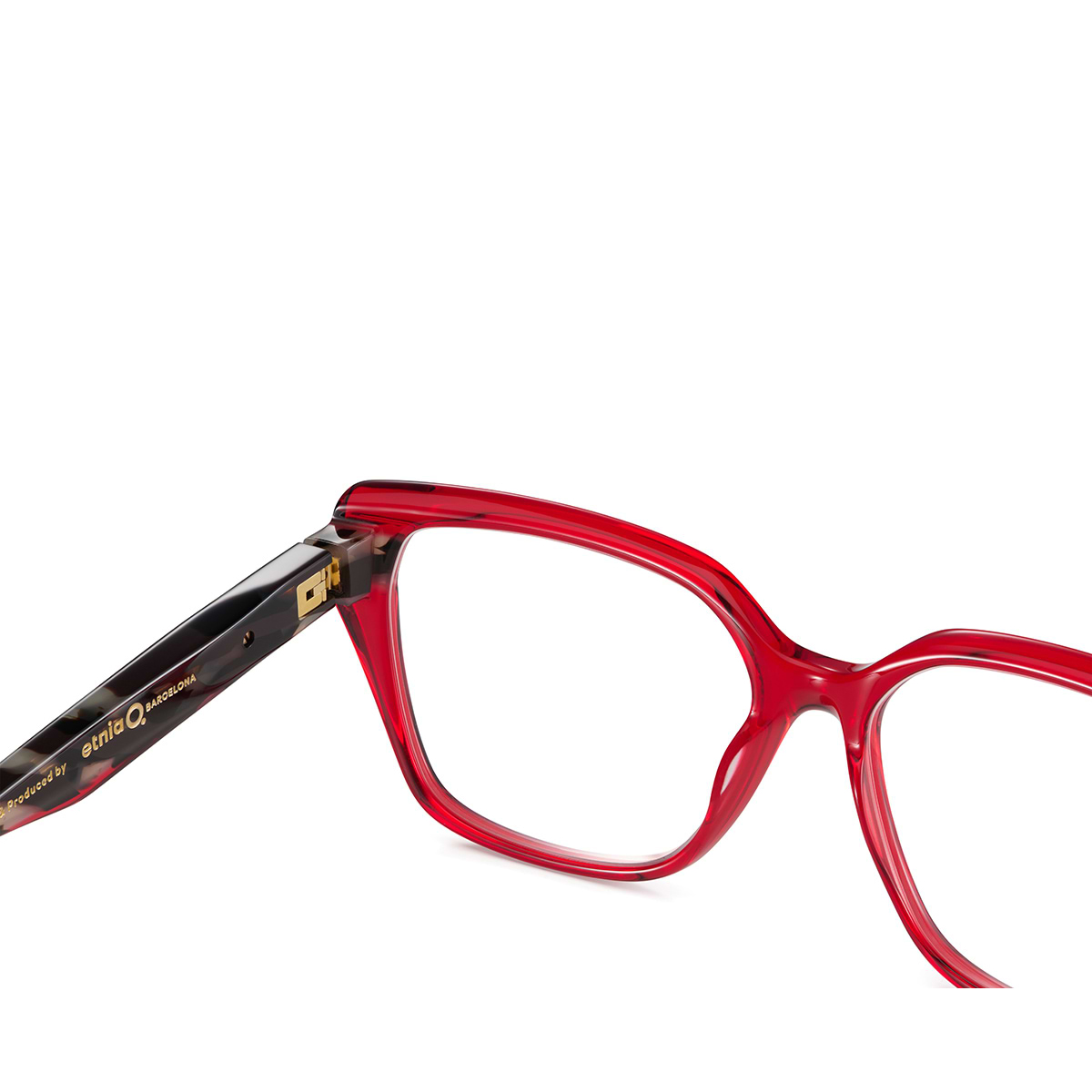 El modelo Mixura No.1 RDZE de Etnia Barcelona destaca por su silueta hexagonal de gran formato y diseño arquitectónico. Estas gafas están fabricadas en acetato natural de alta calidad, combinando un frontal en rojo traslúcido con varillas que lucen un atrevido patrón de cebra. Además, pertenecen a la colección Chroma, donde la marca explora la tridimensionalidad y el uso audaz del color. Por eso, son la elección perfecta para quienes buscan una montura que funcione como una verdadera pieza de diseño en su rostro.