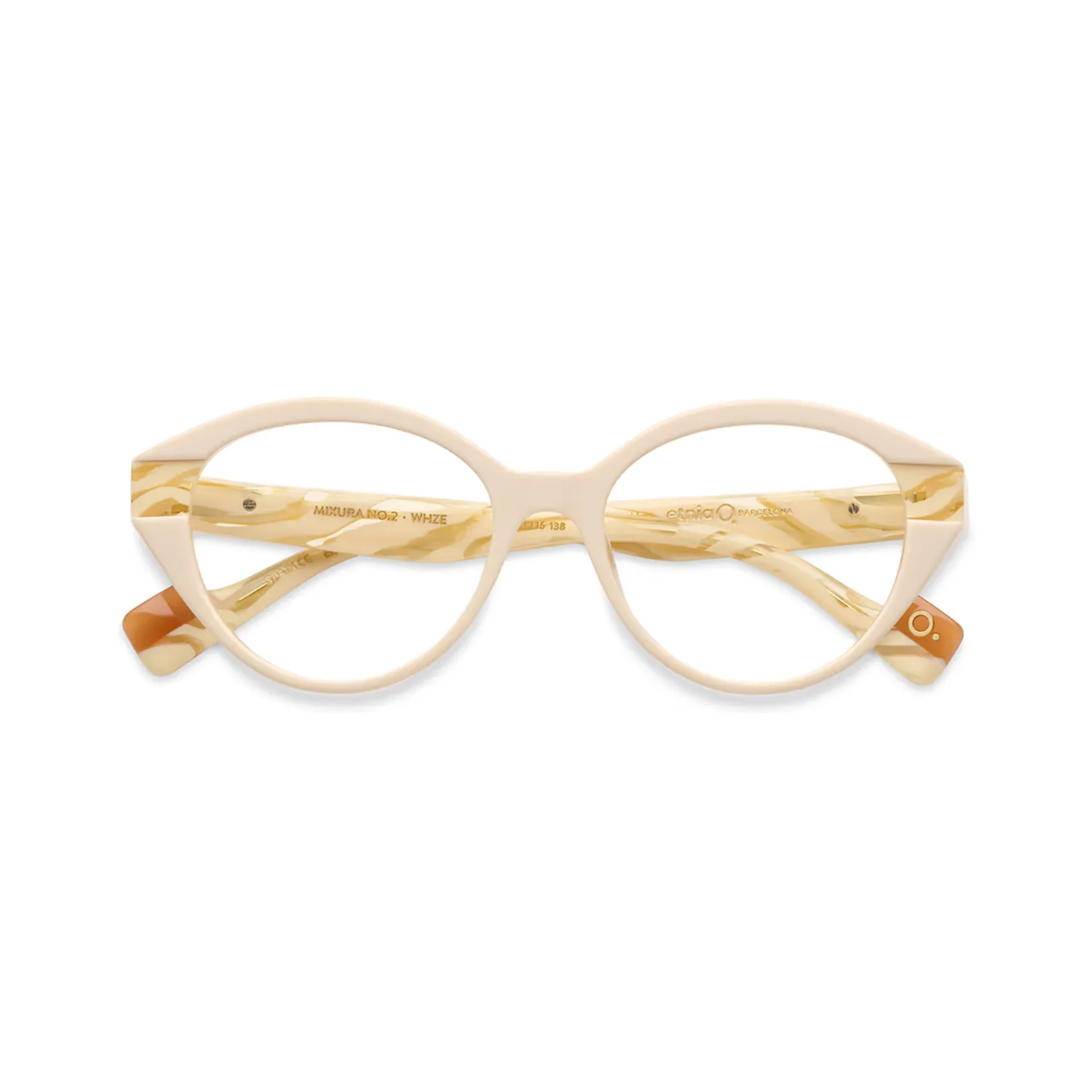 - Mixura No.2 WHZE: montura de acetato natural en color crema (White) con detalles veteados tipo cebra en las varillas, calibre 50.