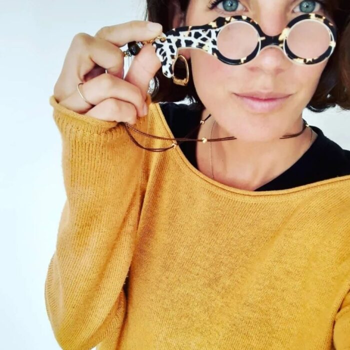 Cada modelo está elaborado en acetato de celulosa con lentes orgánicas, y collares fabricados artesanalmente con componentes como nácar, cristal, madera, terciopelo o piedras naturales.