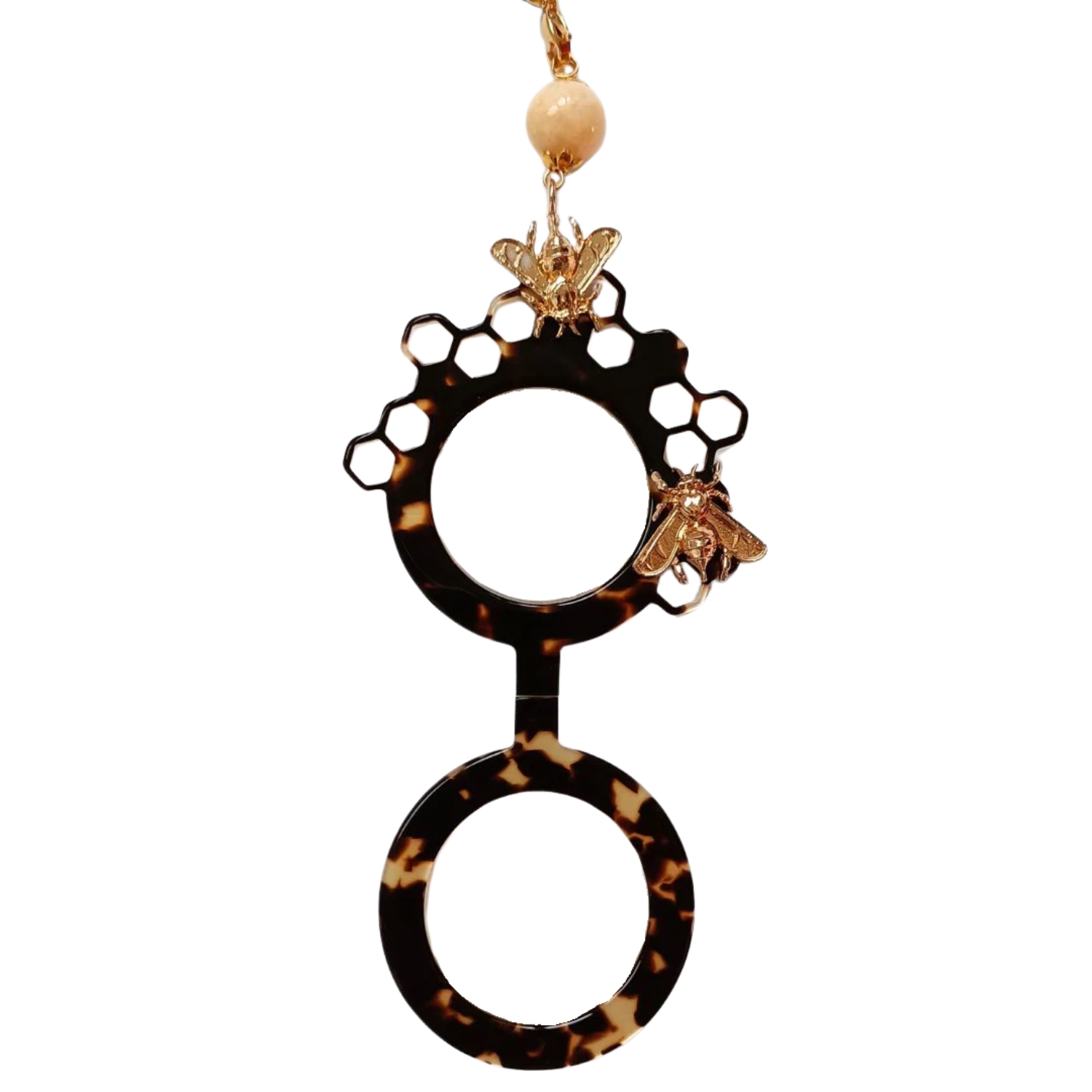 Disponemos de varios modelos en gafas de lectura colgantes con forma de collar, para que puedas elegir tu preferido. Alas en tonos nácar o acetatos de fantasía, collares de abalorios, piedras o nácar natural, y formas que no parecen gafas graduadas, sino piezas únicas de bisutería.