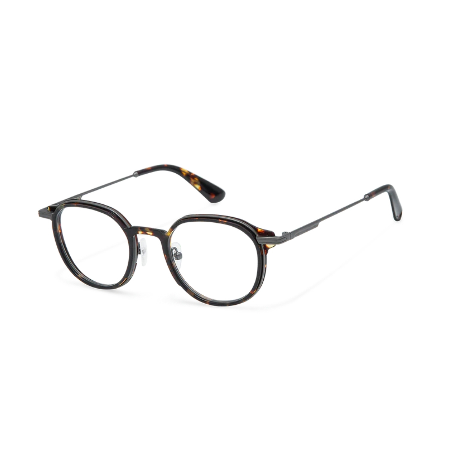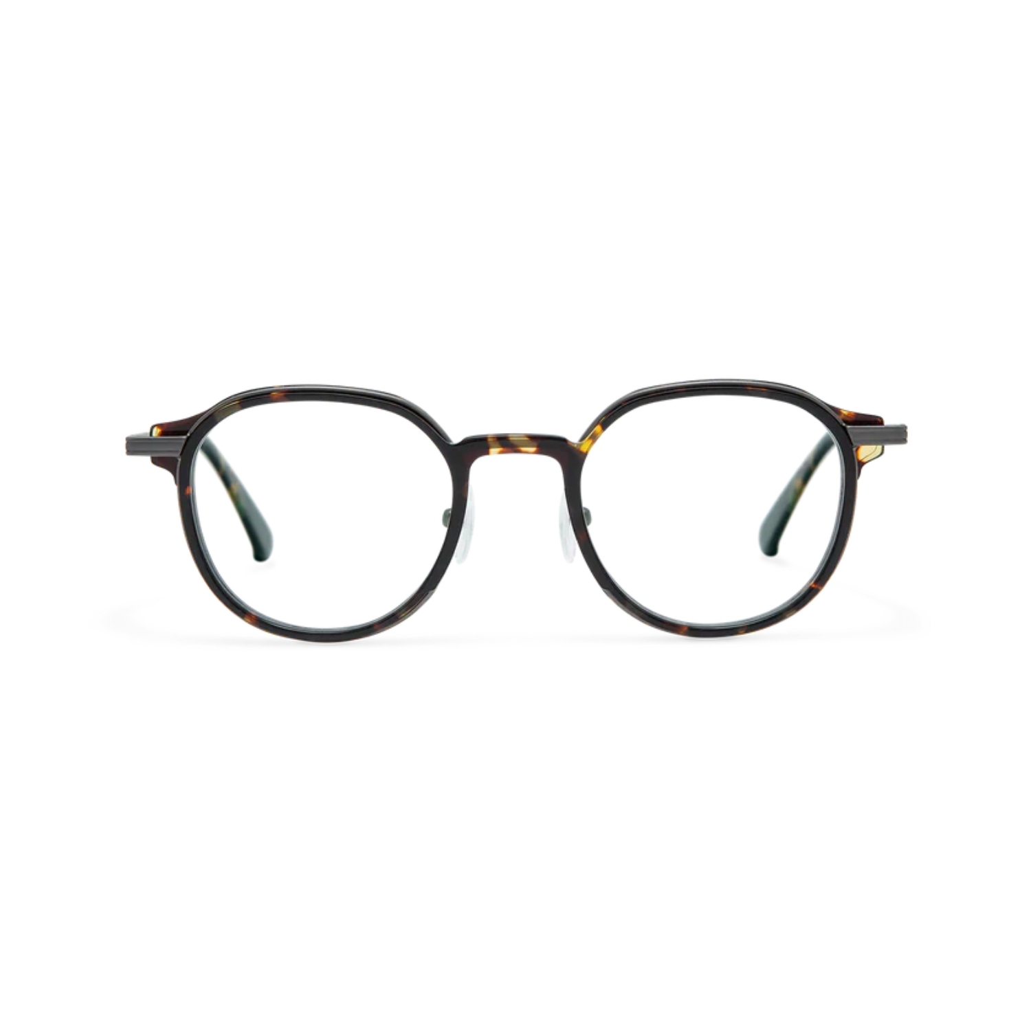 - Cairo GS7016/20: montura redonda de metal y acetato en acabado Havana oscuro, calibre 47.