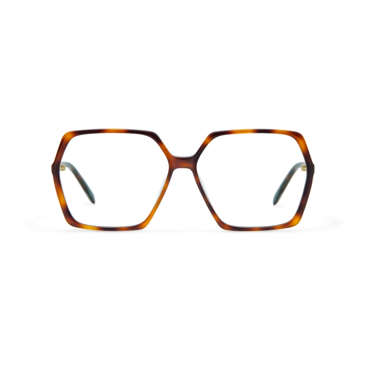 - Su forma hexagonal de inspiración “oversize” aporta una definición contemporánea que realza la expresión facial.