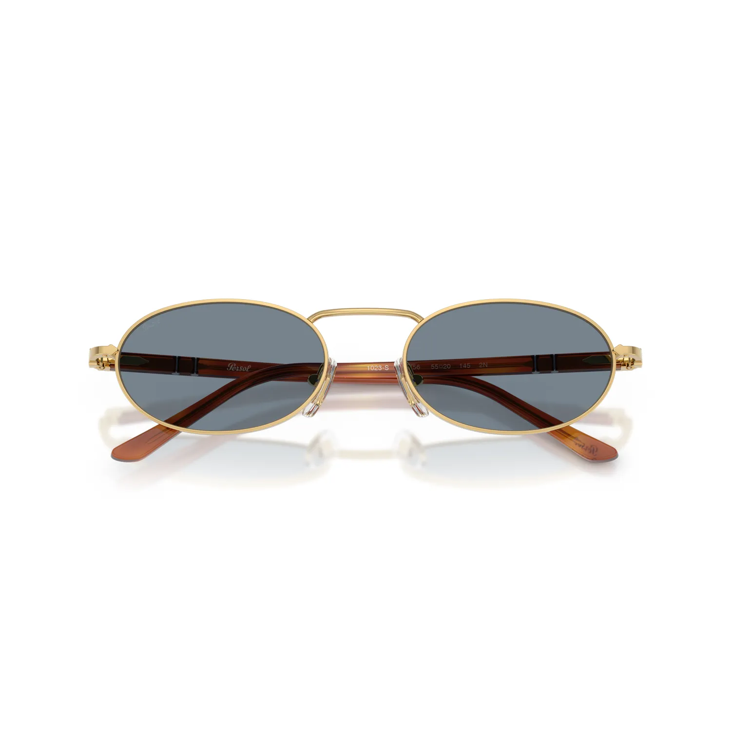 - Persol PO1023S 113256 (Dorado/Azul): Una combinación cromática vibrante y sofisticada. La montura en oro pulido realza la profundidad de las lentes de cristal mineral azules, ofreciendo una estética moderna que ilumina el rostro y se adapta tanto a estilos urbanos como formales.