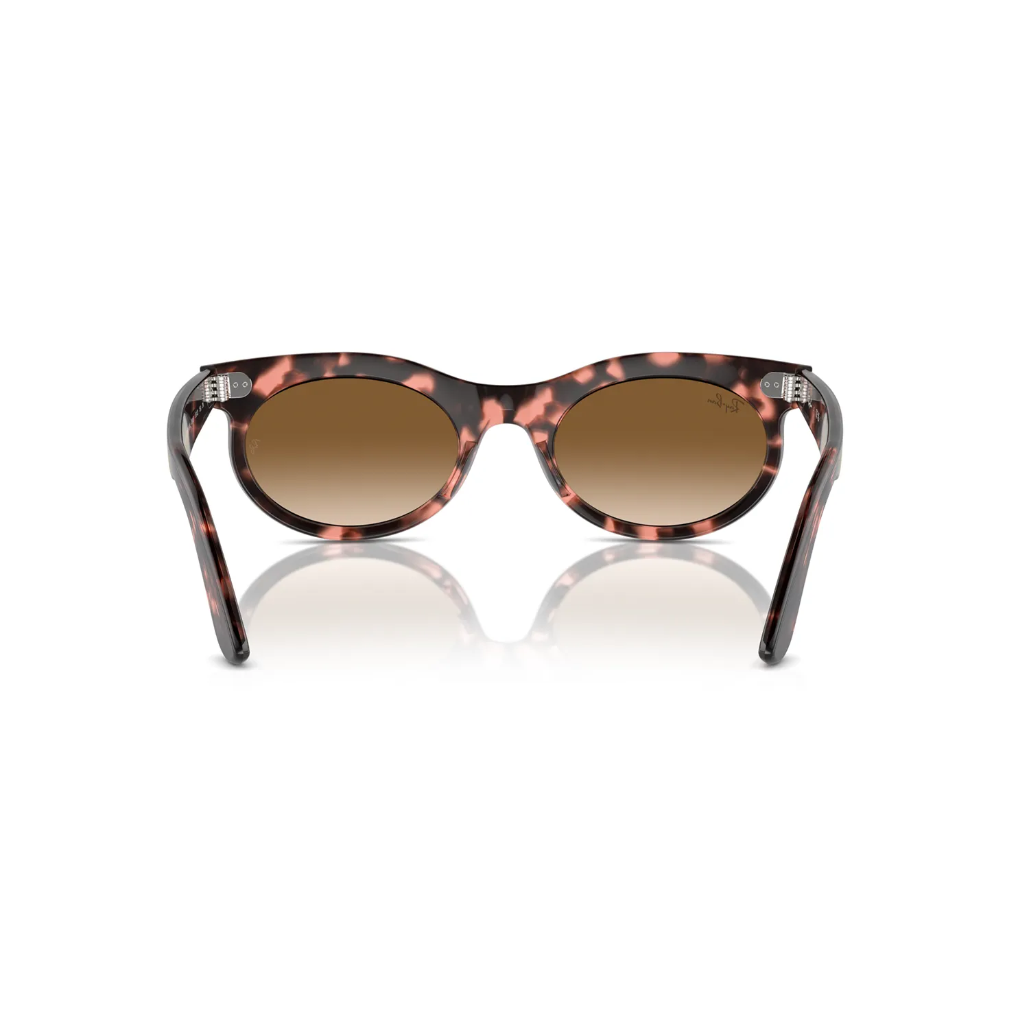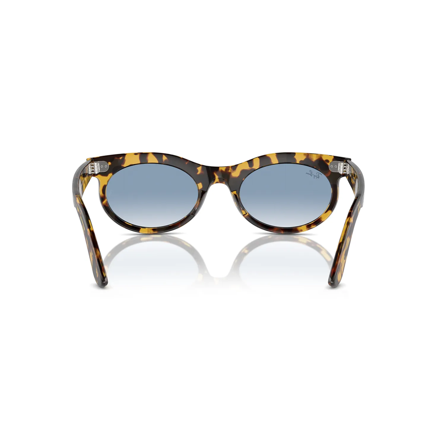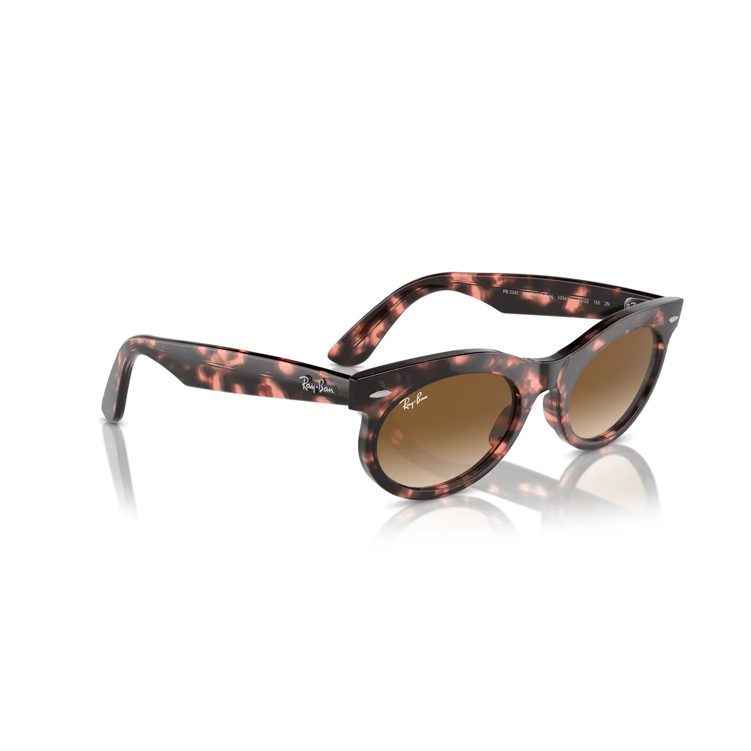 - RB2242 13323F: con montura en color havana y lentes degradadas en azul.
